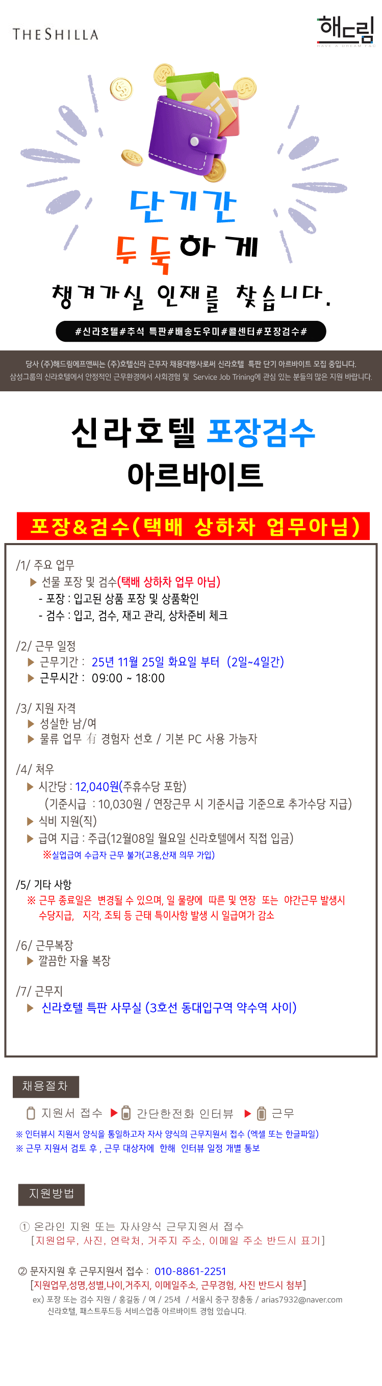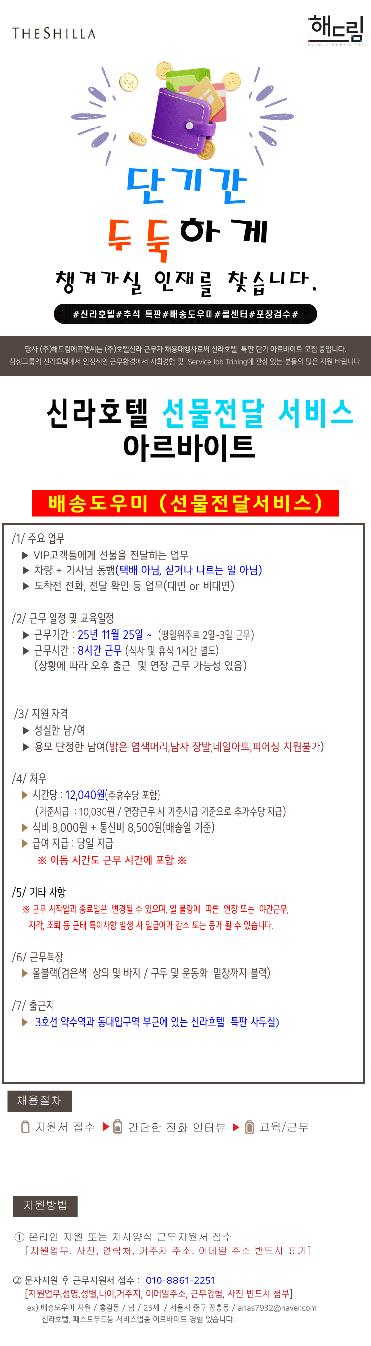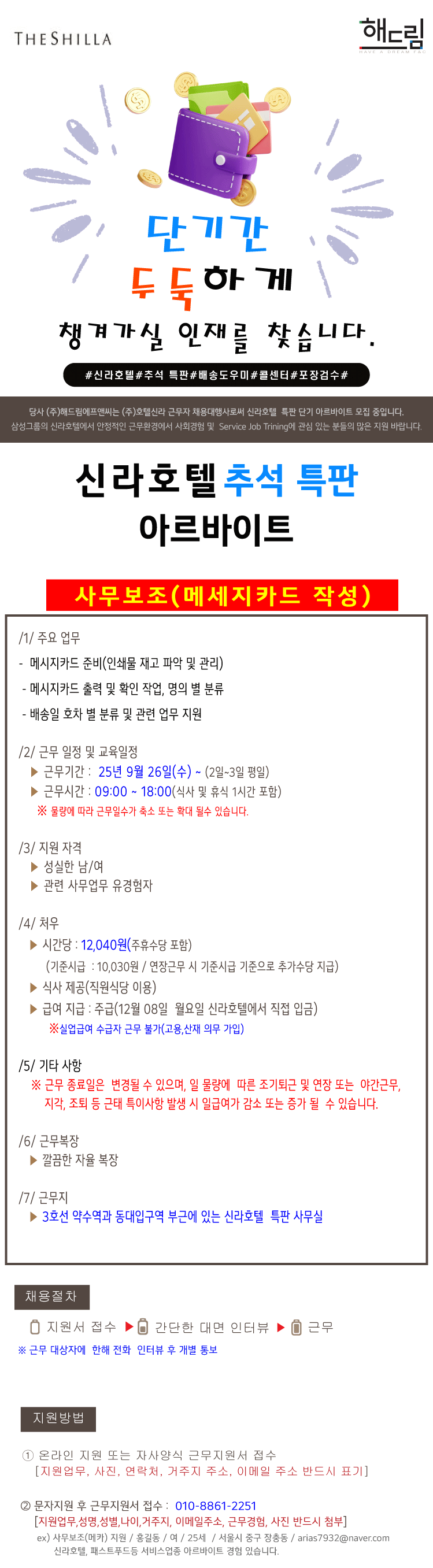 ㈜해드림에프앤씨는 사람을 가장 소중한 자산으로 여기며,| 25년 설특판 아르바이트 | |