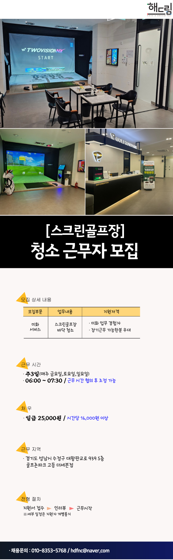 스크린골프장 청소 근무자 모집공고